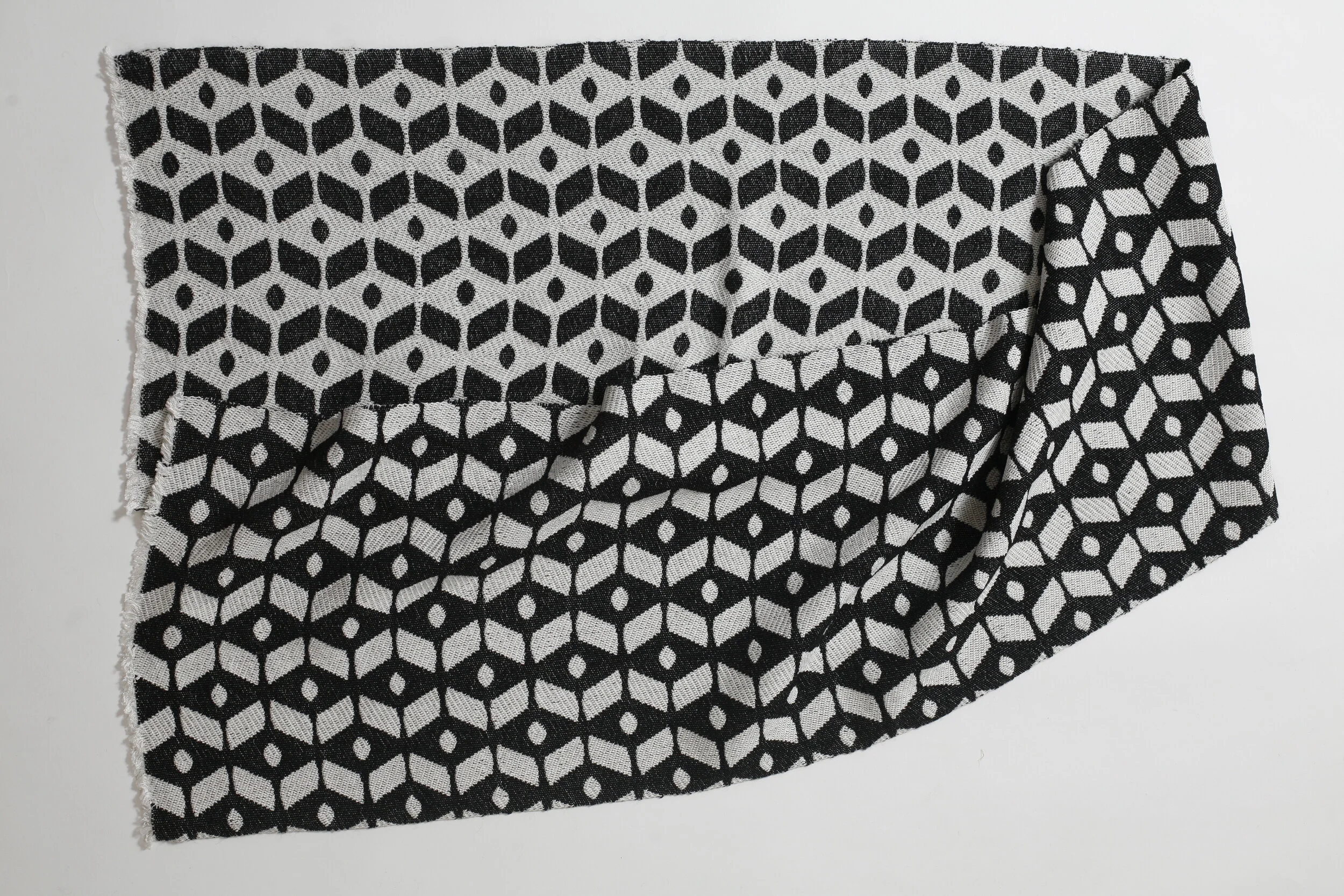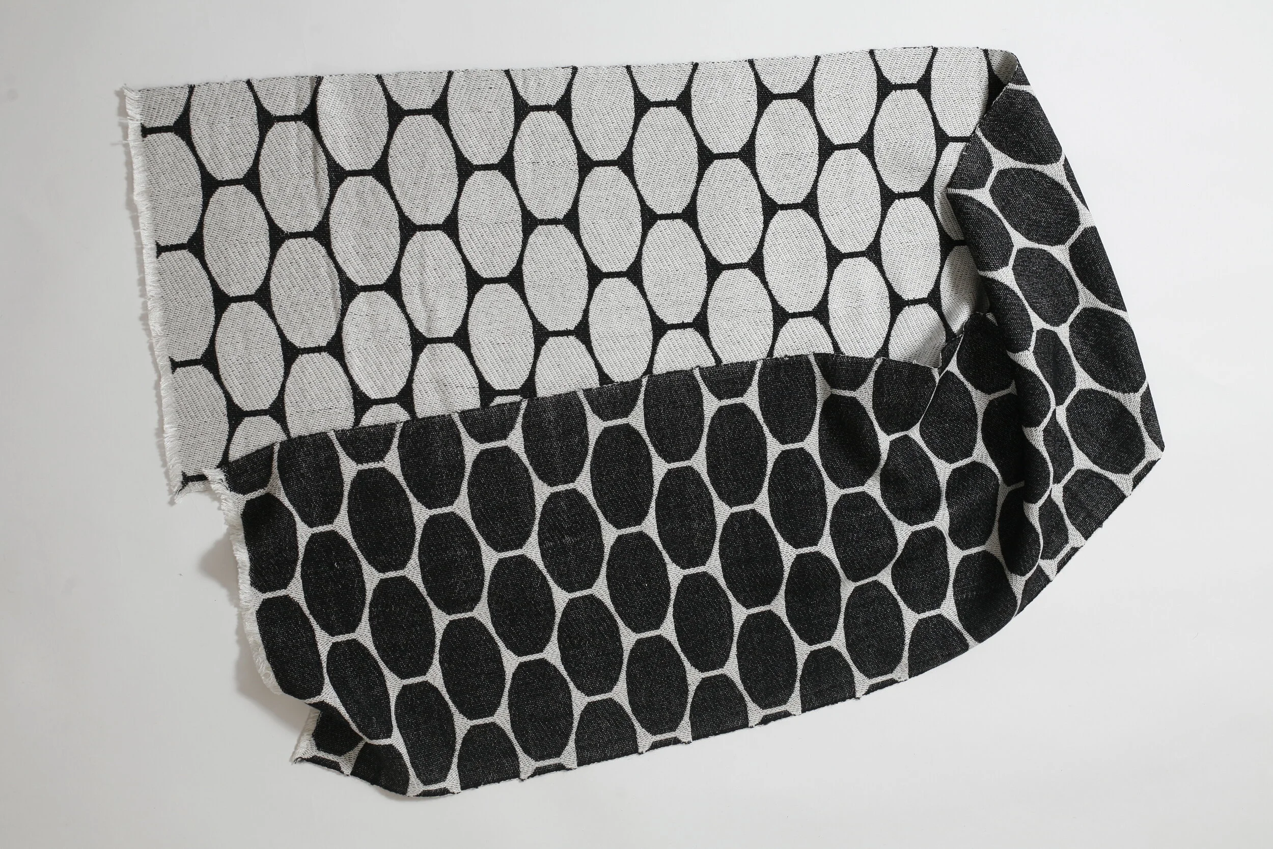 Furnishing cloths are the result of years of research spent examining Jacquard and draw-loom weaving in relation to shaft weaving, culminating in an artsACT 1 year Creative Fellowship to consolidate into artistic outcomes. The woven image capabilities on a shaft loom were maximised in scale and scope by employing lampas structure. Woven in wool and silk threads the robust cloth contains strong graphic tonal qualities inspired by the structures and patterns of small native flora cones.